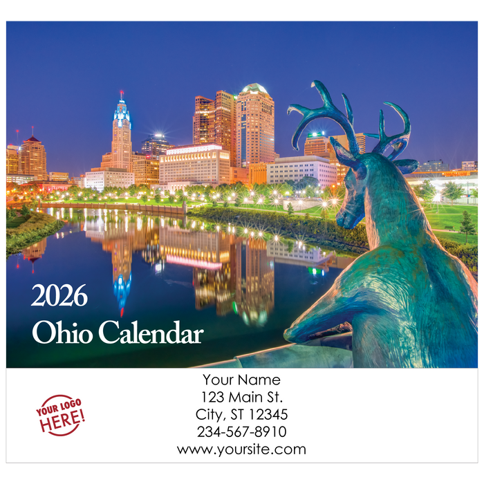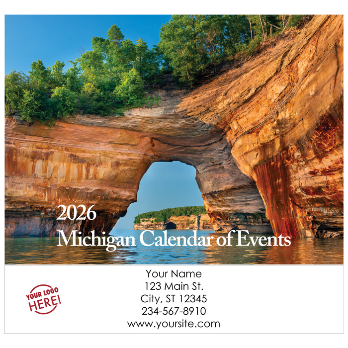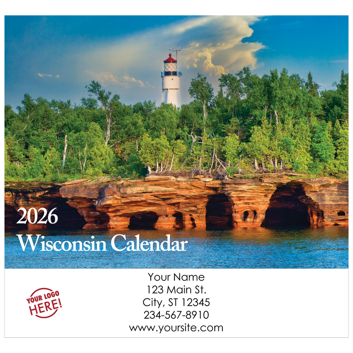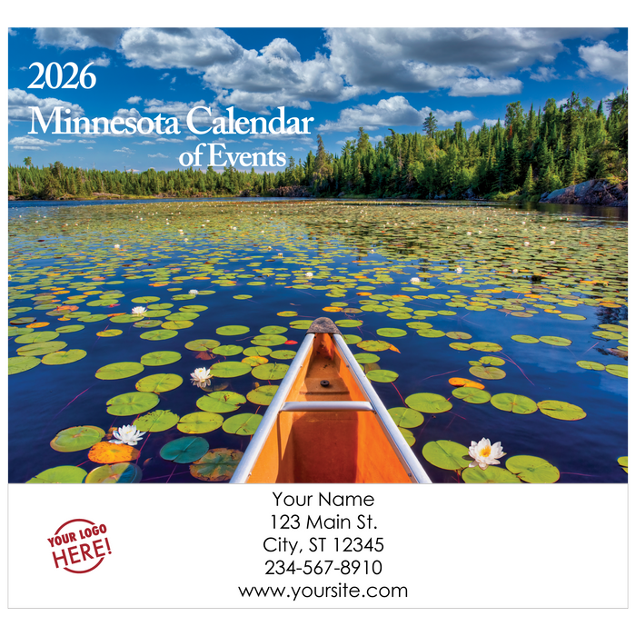 Traditional Wall Calendars are printed on premium cover weight stock throughout and bound with a strong wire-o binding that offers a straight alignment when hanging on the wall. The calendar grid offers a crisp font, moon phases, traditional holidays and a description of the photo of the month. Minnesota and Michigan calendars have an option "of Events" that offers listings of community events such as fairs, festivals, parades etc. The extended imprint sheet behind the calendar displays your custom details in full color.